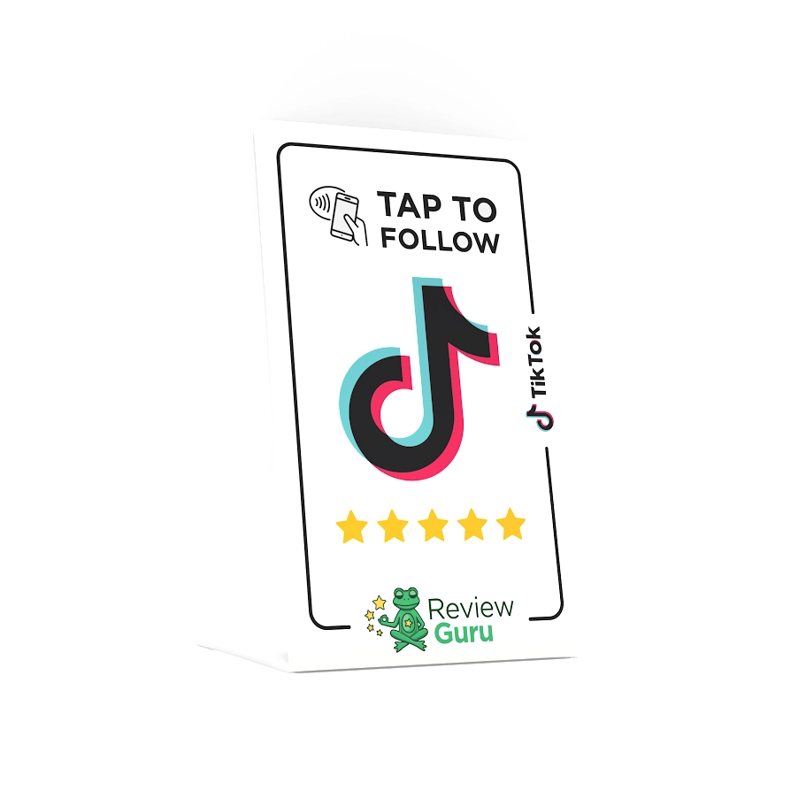 Enhance your social media presence with Review Guru’s Smart TikTok NFC Stand. This sleek stand allows customers to connect with your TikTok profile effortlessly, boosting your online engagement and expanding your audience. Designed for visibility, it can be prominently displayed in your business premises, ensuring it’s always accessible for convenient use.